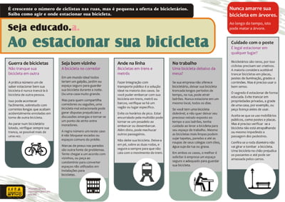 Na hora de estacionar, o ciclista também deve dar o exemplo. Confira o infográfico produzido pela Ong Transporte Ativo com algumas dicas na hora de dar uma paradinha: